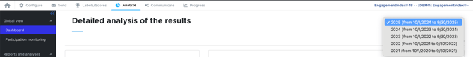 To help you track the evolution of your results from year to year, you will have access in your workspace to a dedicated survey sheet for each model. This sheet allows you to easily view the results for the current year as well as previous years.