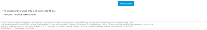 The emails consist of a short text along with a button to participate in the survey.
