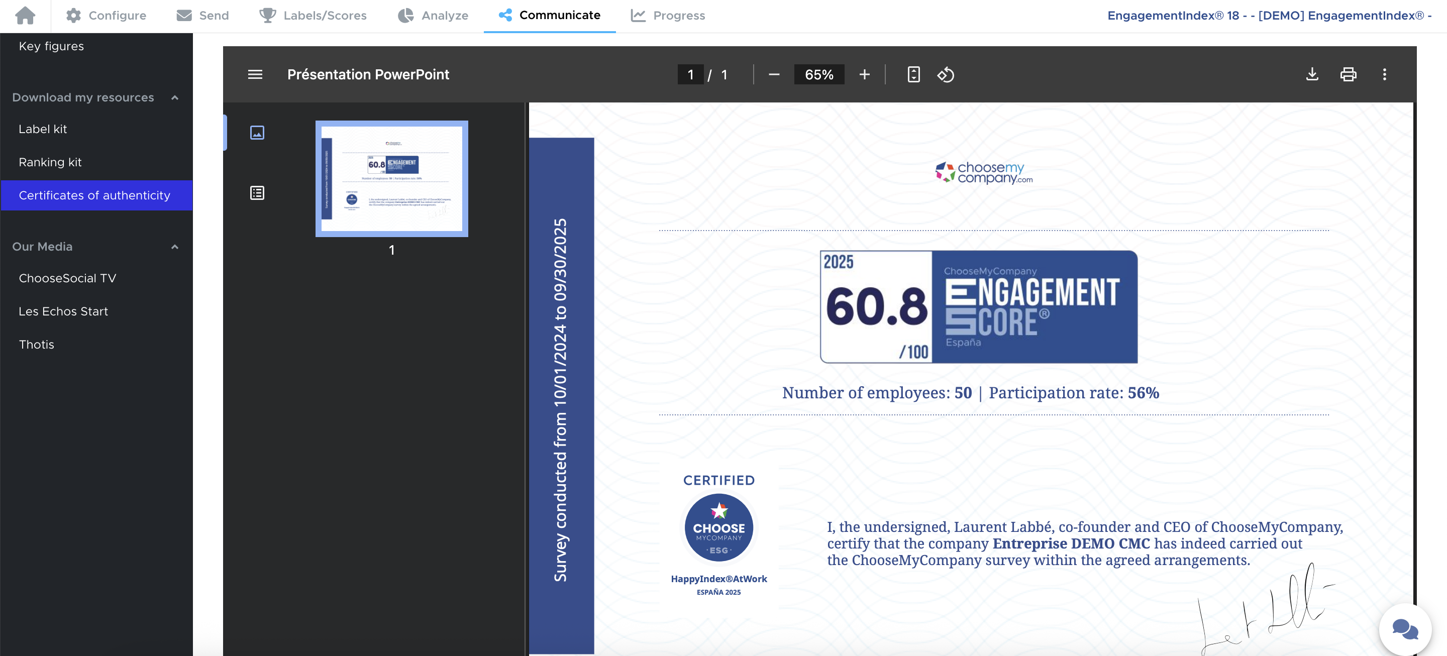 To help you provide evidence of your participation or accreditation (for example, for audits or your extra-financial performance report), we offer an authenticity certificate.
