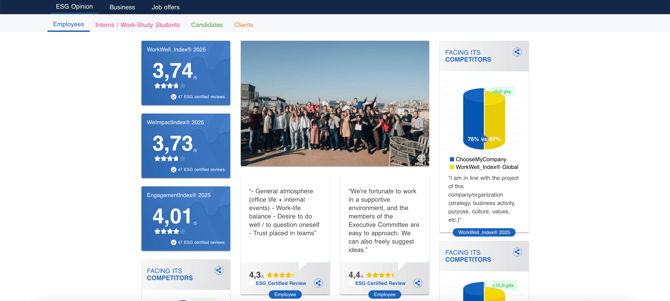 In addition to the survey results, this page offers you the opportunity to present your company, its values, culture, and commitments. You can also include a link to your recruitment site, making it easier for interested candidates to access your job offers.