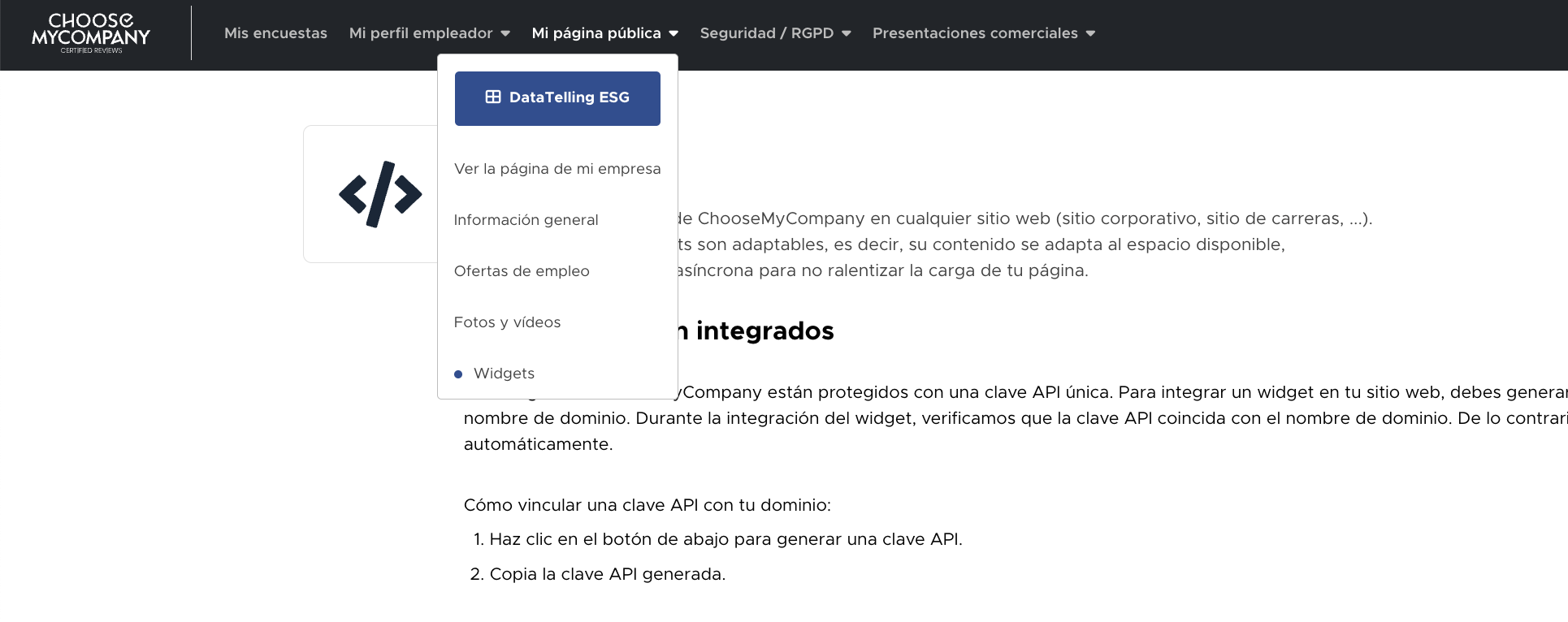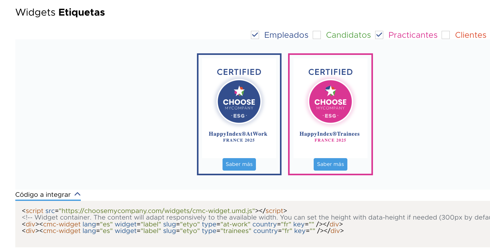 Los widgets se integran mediante un código JavaScript listo para usar.