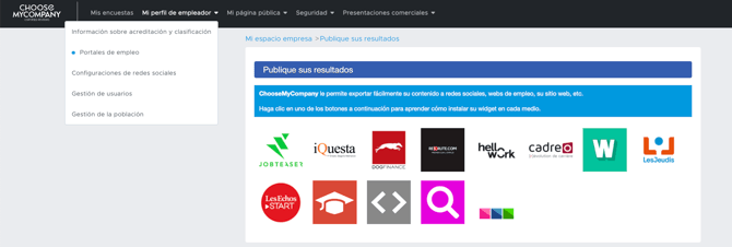 Una vez que su encuesta haya finalizado, le recomendamos que difunda sus resultados en sus diferentes sitios, especialmente en su sitio de reclutamiento y en sus bolsas de empleo.