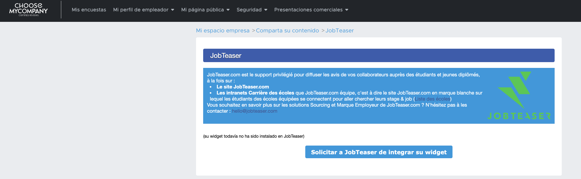 - Solicitar a JobTeaser de integrar su widget