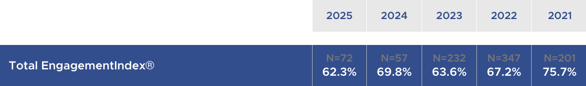 El benchmark histórico le permite explorar las tendencias y la evolución de sus resultados a lo largo de sus diferentes encuestas.