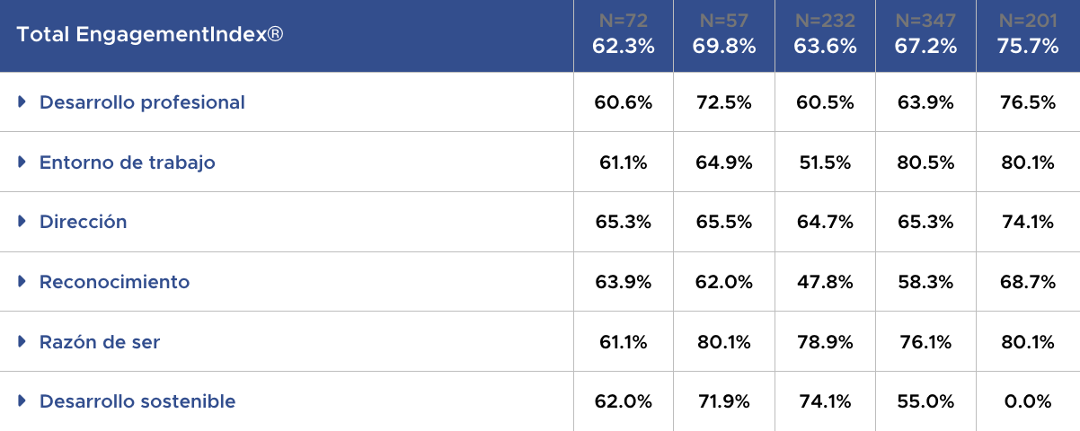 A continuación, encontrará la tasa de respuestas positivas por dimensión.