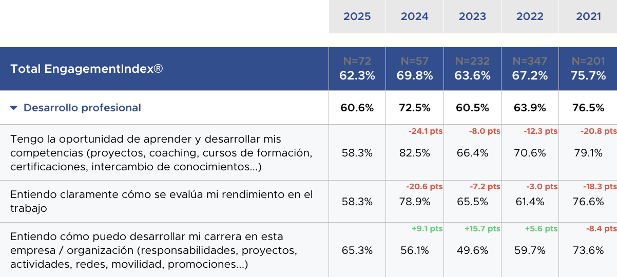 La comparación se realiza únicamente con respecto a la última encuesta; no se trata de una evolución lineal de los resultados año tras año.