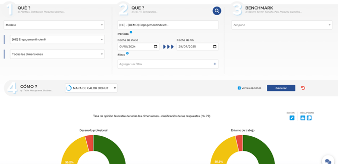 Ejemplo: Se utiliza el formato de dona para obtener una visión rápida de la distribución entre las respuestas favorables, neutras y desfavorables.