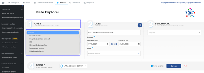 Le recomendamos comenzar analizando sus resultados con nuestras diferentes herramientas y recurrir al Data Explorer si desea profundizar aún más su análisis.