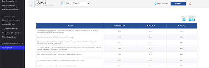 - Luego, refine aún más, por ejemplo, con un análisis por pregunta o por dimensión.
