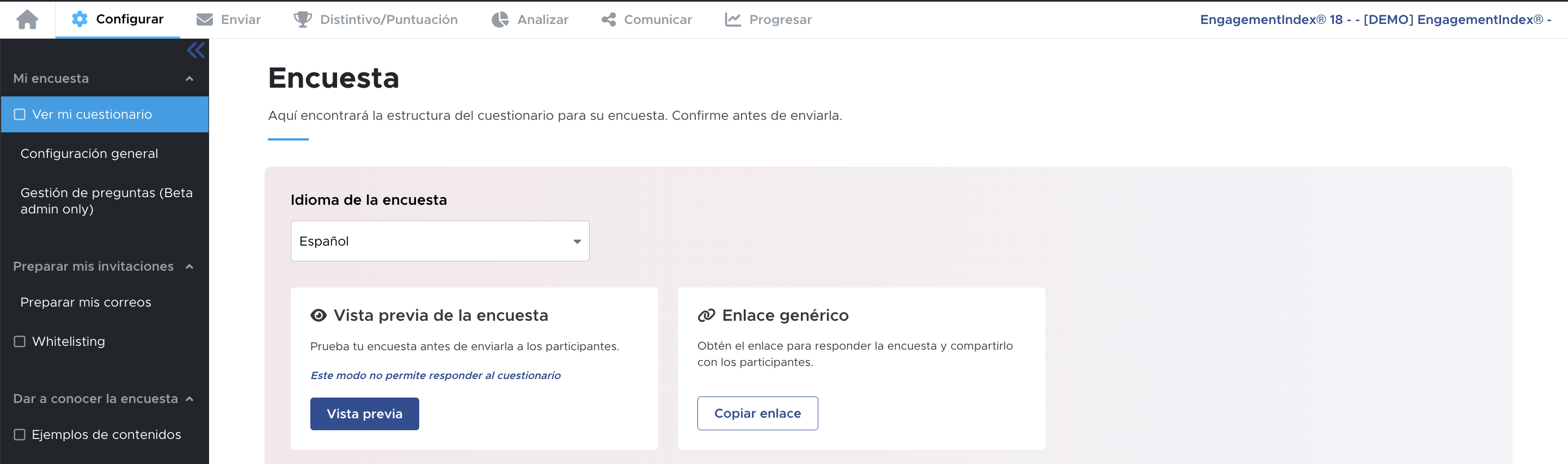 Te proporcionamos el enlace directamente en tu encuesta, en la pestaña "configurar" → "vista general".