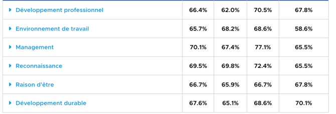 Vous retrouvez ensuite le taux de réponse positive par dimension.