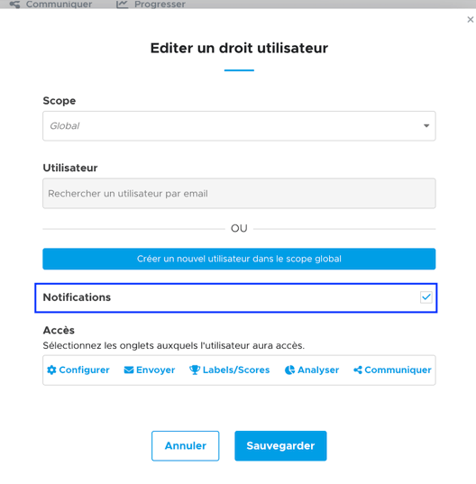 - de cocher/décocher la case "Notifications" pour l'utilisateur souhaité