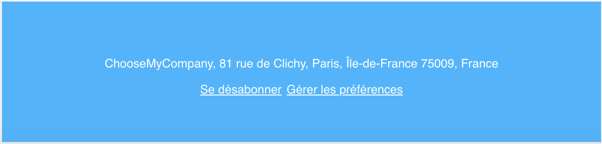 - Soit des mails informatifs, par exemple des invitations à nos évènements, envoyé de l'adresse communication@choosemycompany.com ou team-csm@choosemycompany.