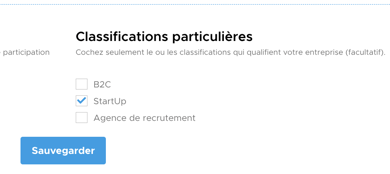 Pour sélectionner cette catégorie, vous devez cliquer sur "Start-Up" en vous rendant dans "Mon profil employeur --> informations accréditations et classements"
