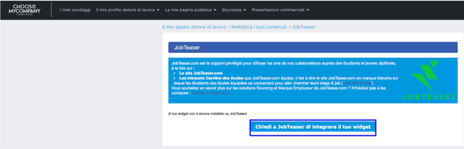 Per integrare il vostro widget sui job board, e in particolare su JobTeaser, è necessario fare richiesta.