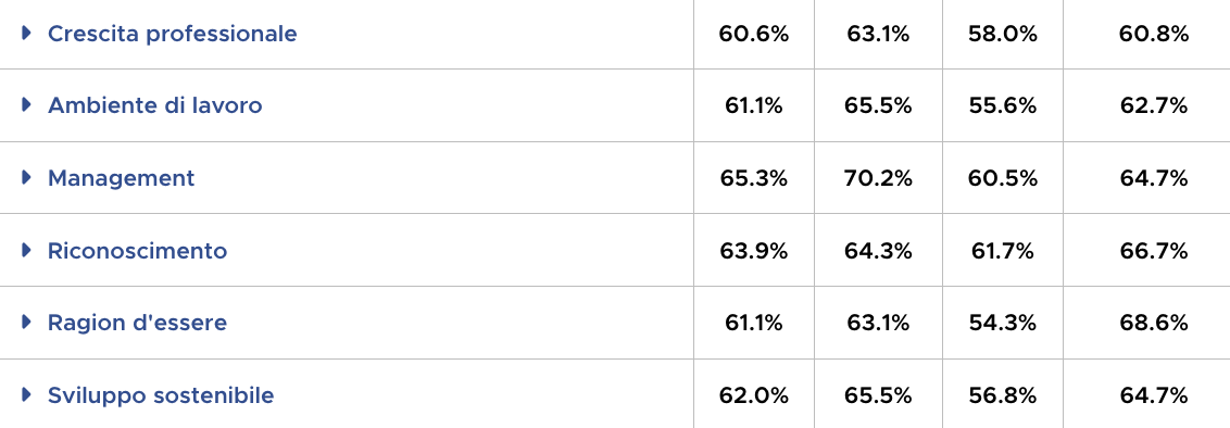 Successivamente, troverete il tasso di risposte positive per ciascuna dimensione.