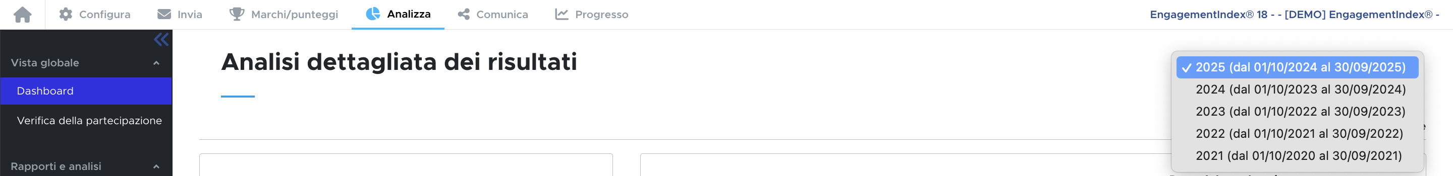 Nella scheda "Analizza", troverete un filtro temporale che vi permetterà di accedere a tutti i dati degli anni precedenti.