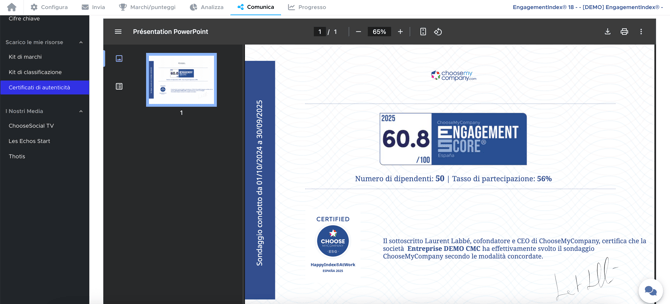Per permettervi di giustificare la vostra partecipazione o accreditamento (ad esempio nell’ambito delle vostre verifiche o del vostro rapporto di sostenibilità extra-finanziaria), vi offriamo un certificato di autenticità.